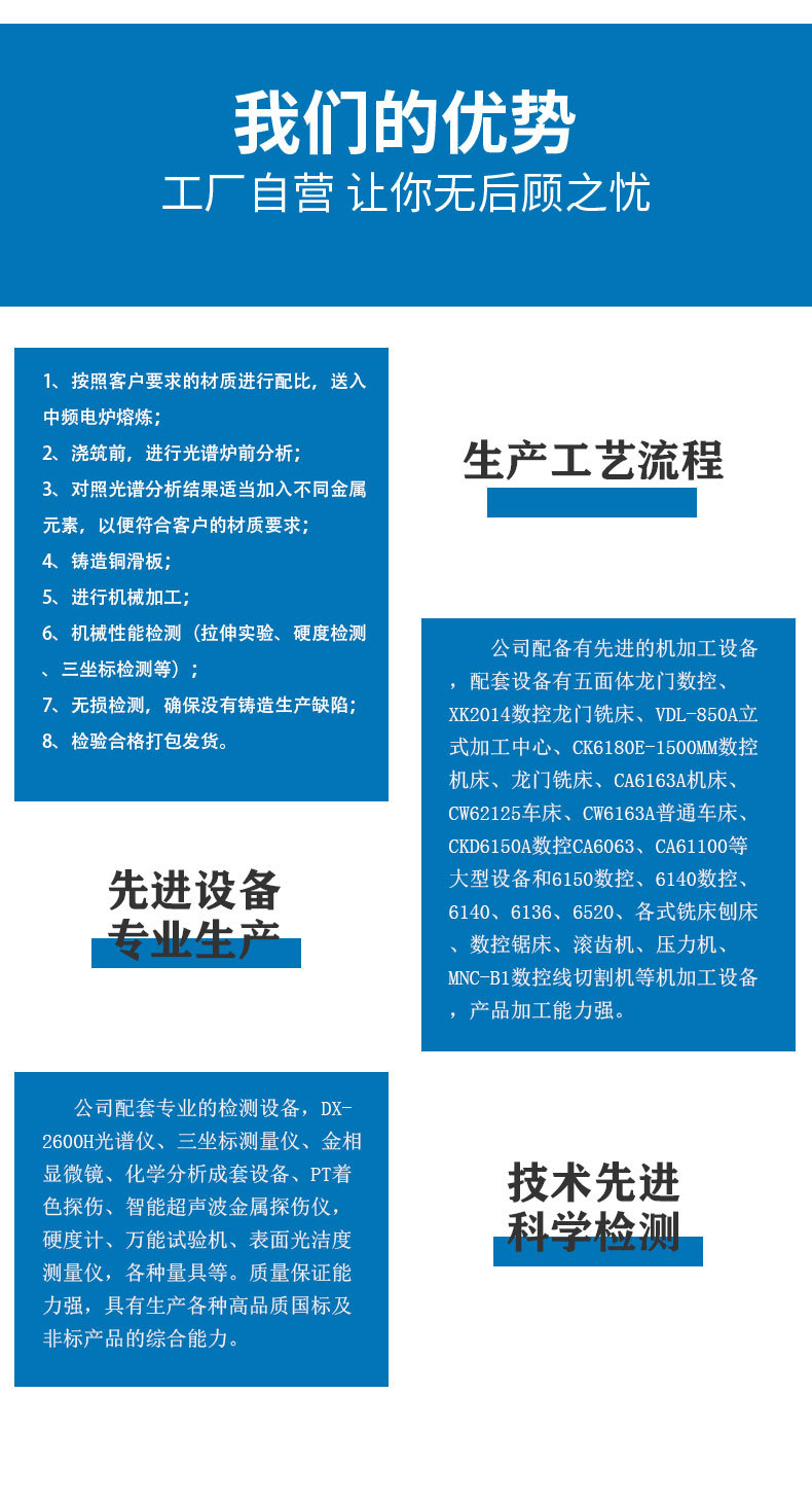 乐鱼体育官方网站-登录首页专业生产轧机万向轴半圆滑块、压下螺母、铜套等铜配件,并且可以根据客户需要,进行各种形式和标准的定制生产,建有完整、科学的质量管理体系;有完善的成分化验、机械性能检测等质检系...